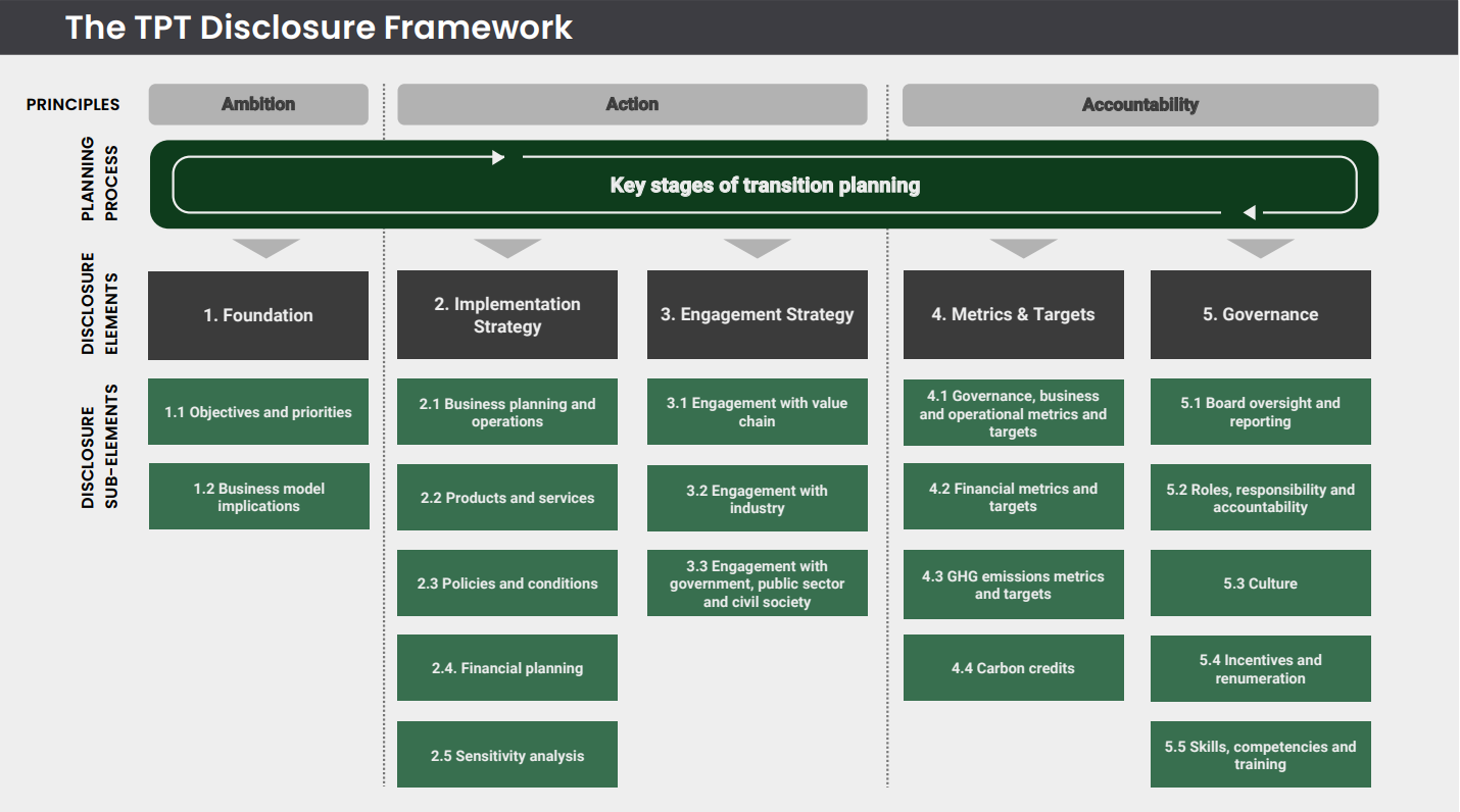 The United Kingdom has played a critical role in shaping transition plan expectations. The Transition Plan Taskforce (TPT), launched at COP26, issued a comprehensive disclosure framework designed to guide corporates and financial institutions in publishing credible and consistent transition plans. In 2024, the TPT officially handed over its guidance materials to the International Sustainability Standards Board (ISSB), which is embedding the content into its global baseline for climate reporting.